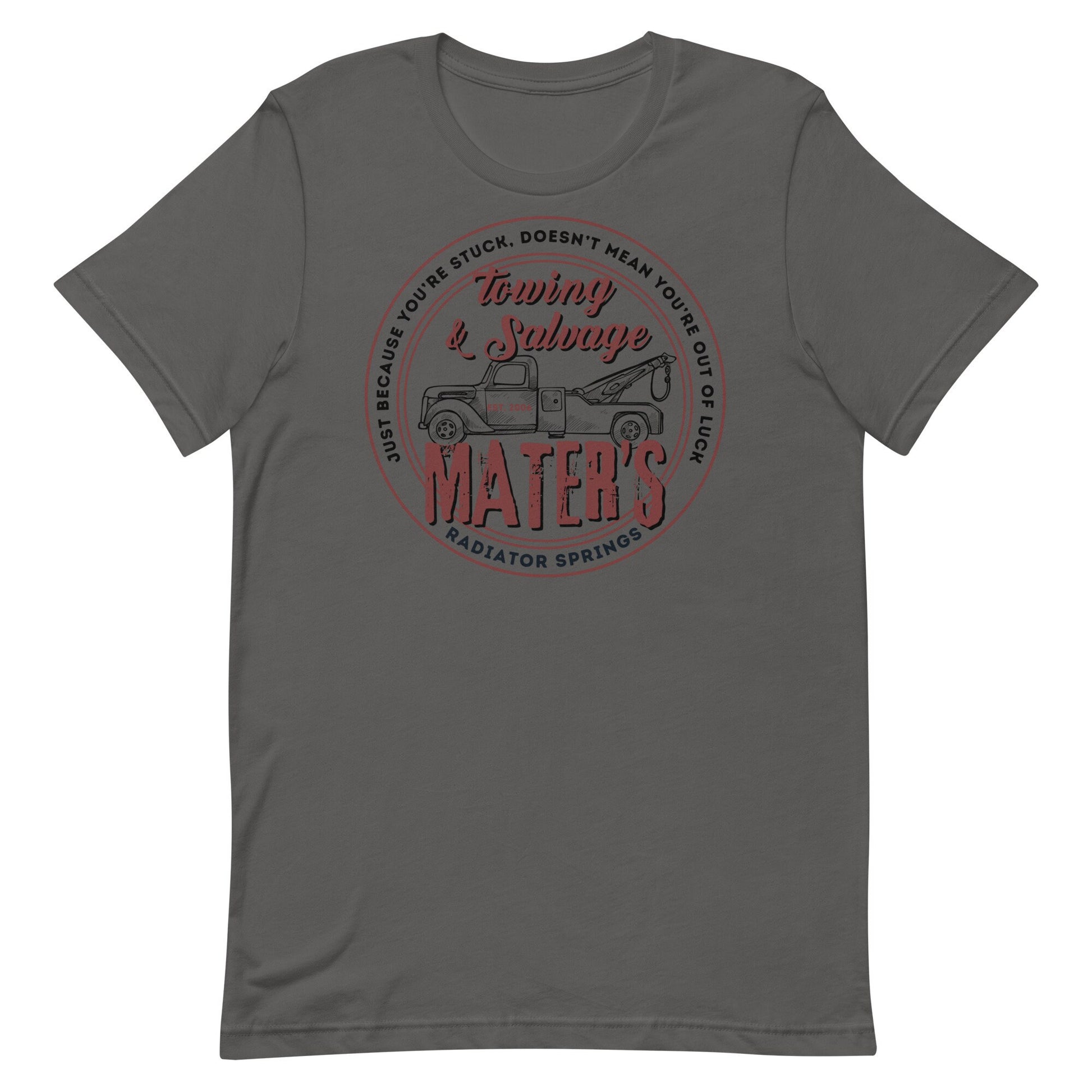 Get ready to tow some fun with our Mater's Towing Co. Shirt – a playful tee perfect for road trip lovers, family adventures, and fans of nostalgic roadside charm. Featuring a subtle themed design, this Bella + Canvas Unisex Short Sleeve T-Shirt is soft, breathable, and made for all-day comfort.